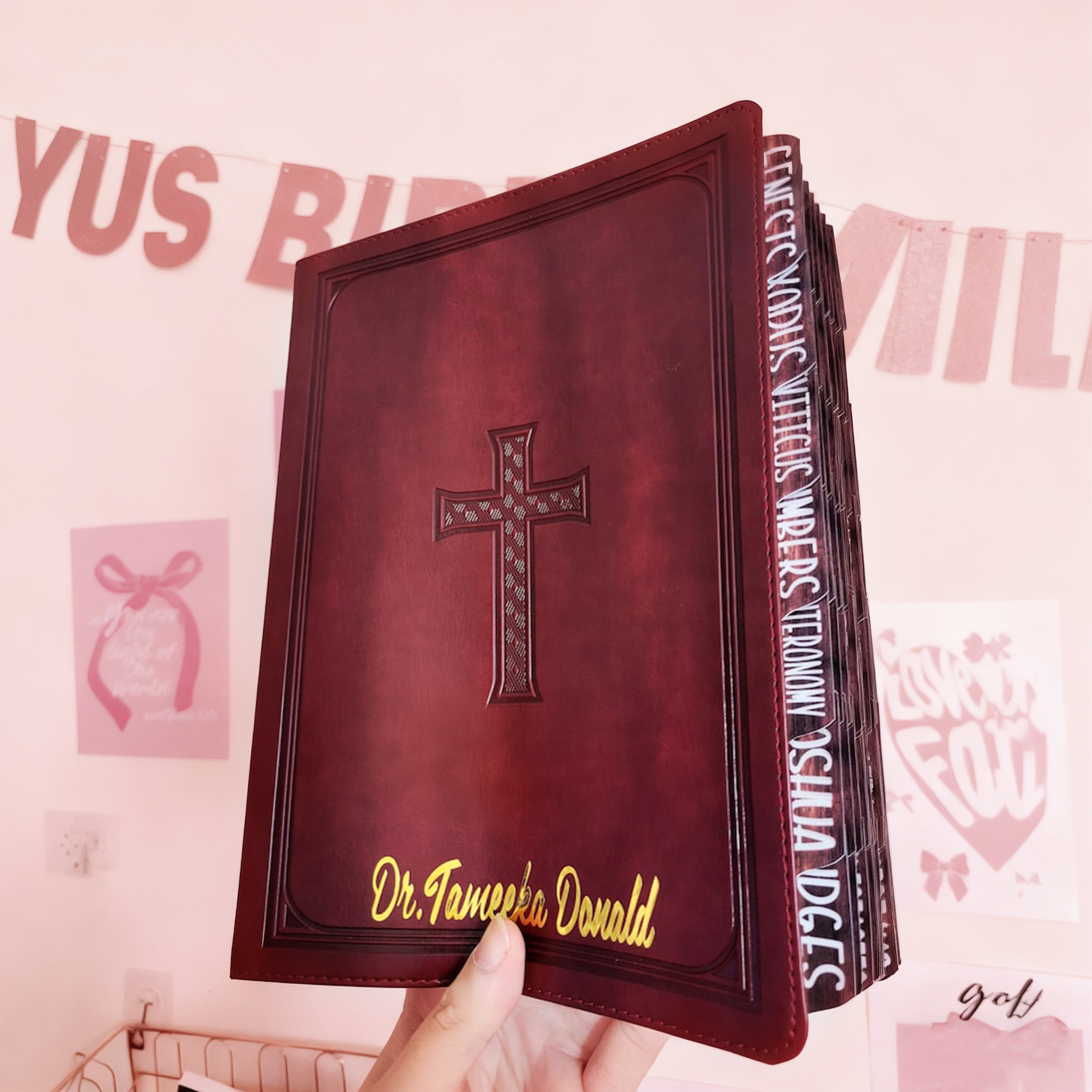 ✨ Cross design with faux leather cover